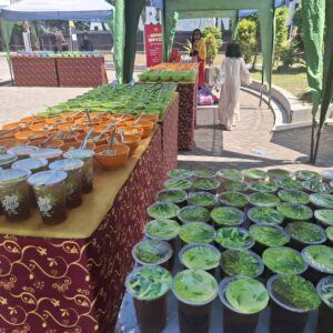 Makanan dan minuman itu diatur di atas meja yang terlindung oleh tenda-tenda. Selepas sholat Jumat, jamaah dipersilakan mengambilnya untuk dimakan bersama-sama.