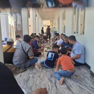 “Biasanya, pak ! Jumat Berkah membagikan makanan sudah dipacking dalam dos dan dibagikan di pinggir jalan. Di sini berbeda, karena disajikan langsung di pelataran masjid dengan berbagai menu, ada bakso, ada Coto, kue, minuman es teh dan lain-lain,” ujarnya.